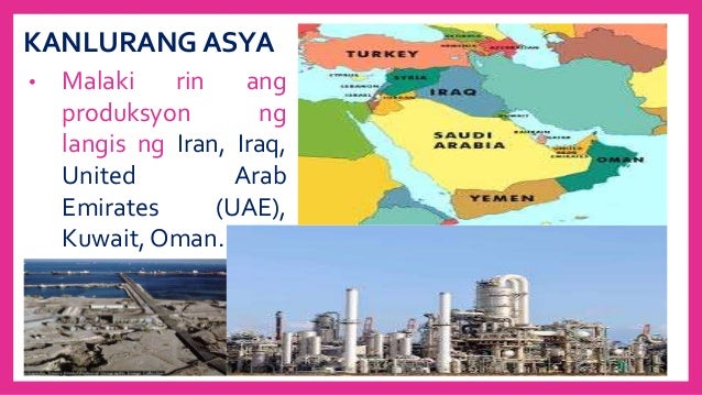 BANSA NG KANLURANG ASYA Sa paksang ito alamin at tuklasin natin ang ibat ibang mga bansa ng Kanlurang Asya at ang paglalarawan ng bawat isa Ang Asya ay nahahati sa limang rehiyon. Pinakamalaking tagapagluwas ng petrolyo sa buong daigdig ang Saudi Arabia at malaki rin ang produksiyon ng langis ng mga bansang Iran Iraq United Arab Emirates UAE Kuwait at Oman. ANG MGA LIKAS NA YAMAN SA ASYA.