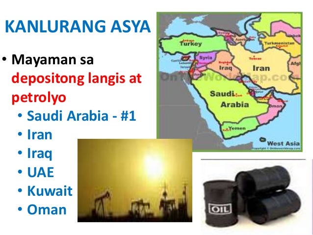 Likas na Yaman sa Kanlurang Asya Sa kanlurang Asya may maraming mga mabuhangin at tigang na lupain ngunit hindi ito nangangahulugang hindi sila sagana sa likas na yaman dahil sagana ang rehiyong ito sa yamang mineral lalong-lalo sa langis at petrolyo. Ano Ang pangunahing likas na yaman Ng Iraq. Mga Bansa sa Silangang Asya at Likas na Yaman ng Silangang Asya part 4 Binubuo ng Hapon tsina Taiwan Monggolia at Korea ang Silanggang Asya.